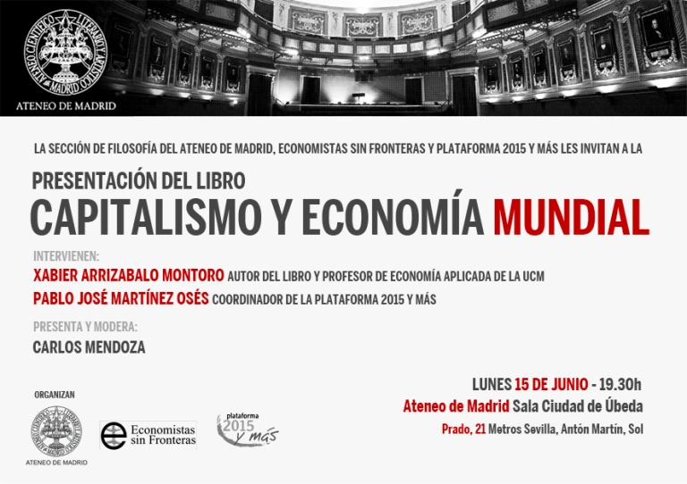 Xavier Arrizabalo Montoro, autor del libro y profesor de economía aplicada de la UCM y Pablo José Martínez Osés, coordinador de la Plataforma 2015 y más. Presenta y modera: Carlos Mendoza |